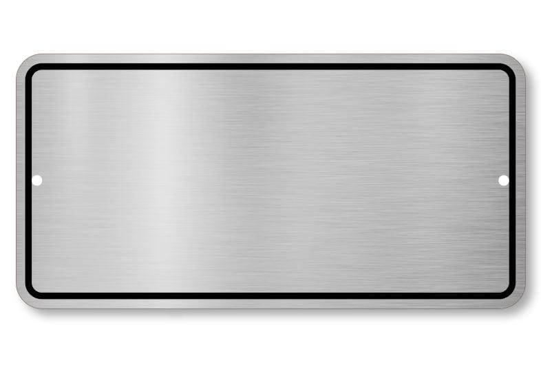 Tabliczka wykonana jest z laminatu grawerskiego imitującego stal szczotkowaną.